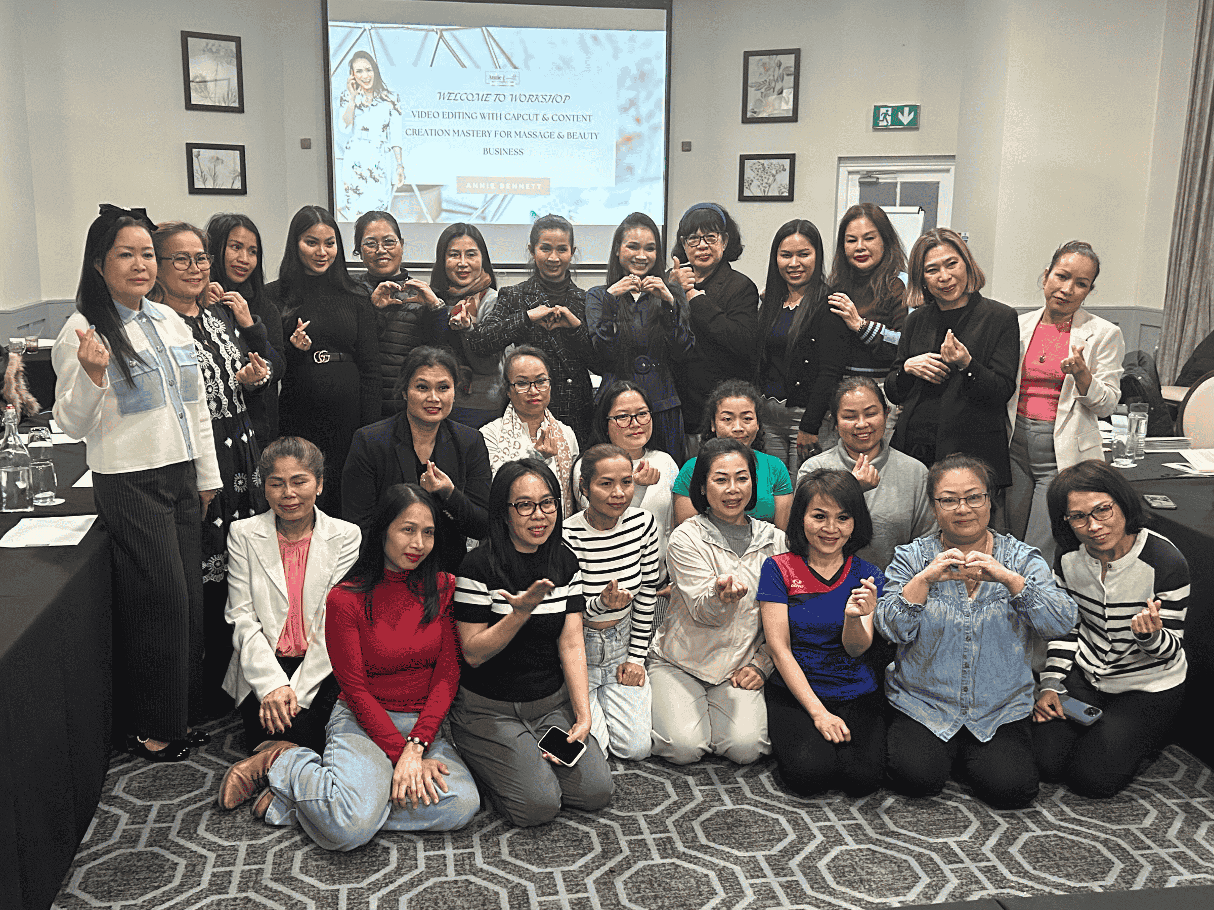 นี่คือภาพงานบรรยากาศงาน Workshop ที่ครูแอนนี่จัดที่โรงแรมใน London เป็น Workshop สอนแต่งภาพและวิดีโอสำหรับร้านนวดแบบจับมือทำ เป็นภาพครูแอนนี่กำลังสอนให้กับเจ้าของธุรกิจร้านนวดต่างๆ